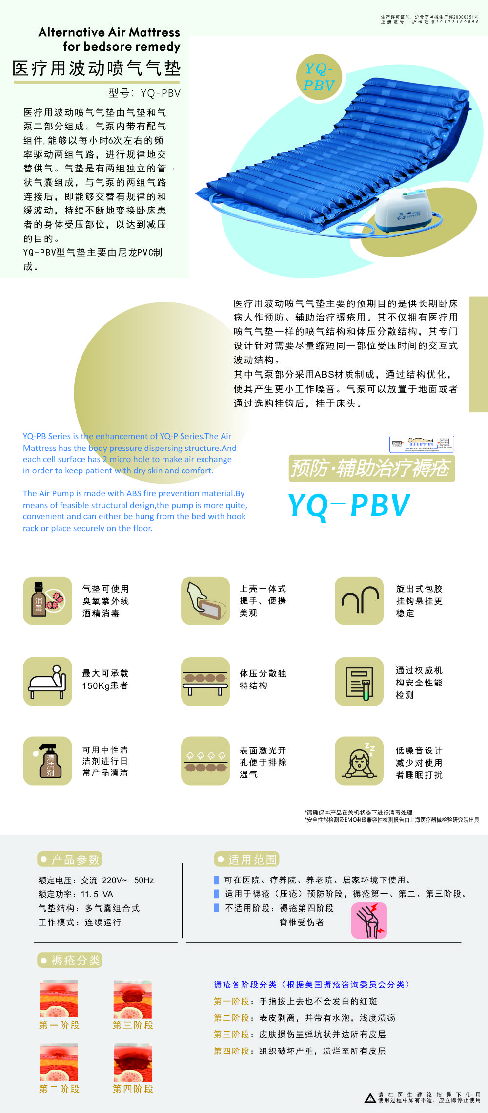 医疗用波动喷气气垫主要的预期目的是供长期卧床病人作预防、缓解褥疮用。