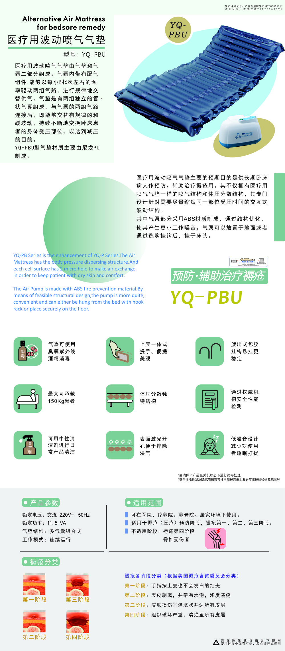医疗用波动喷气气垫主要的预期目的是供长期卧床病人作预防、缓解褥疮用。